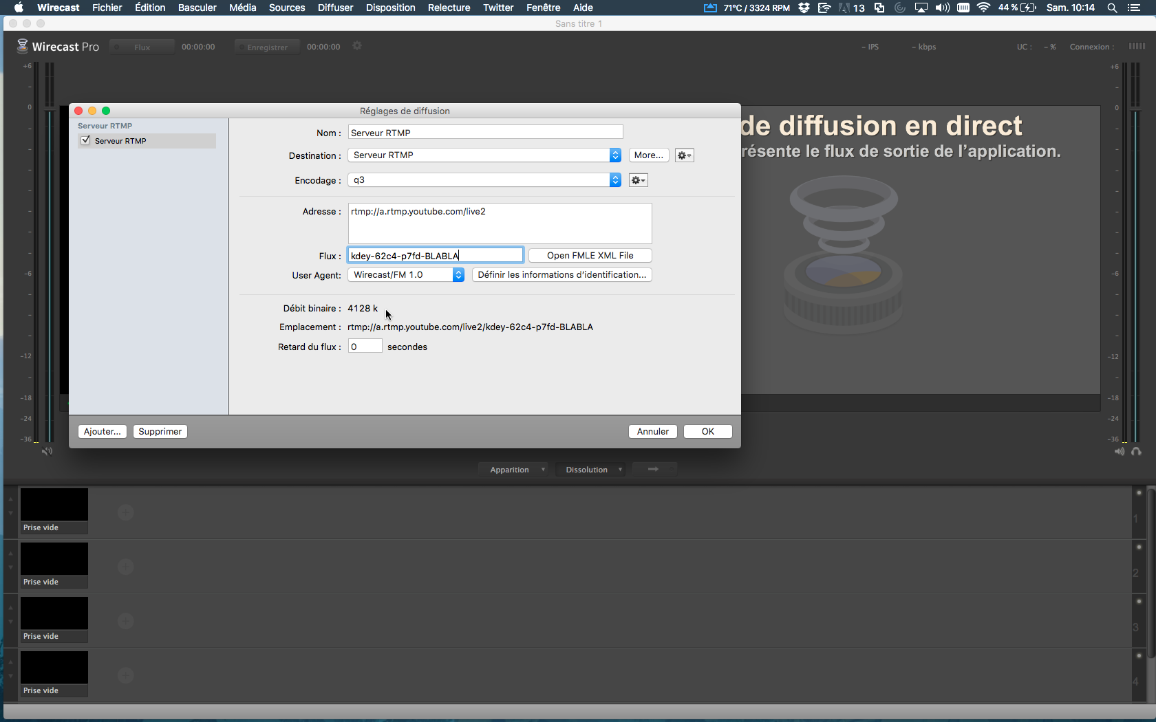 "Step 6" - 1680 × 1050 in Broadcast a bike polo tournament 6. You can see that the bit rate is now 4128k (a bit lower than the 4’444k that we found earlier but it’s ok) ← Previous image Next image → quentin Published 20 August 2016