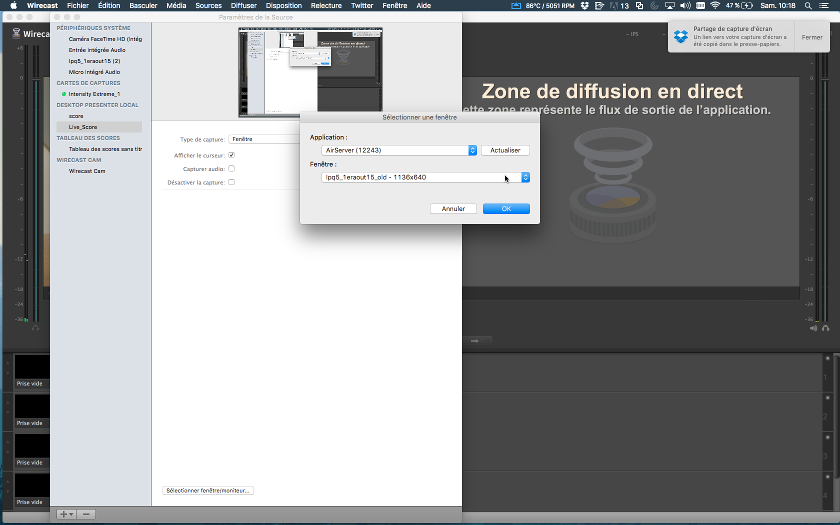 "Capture d’écran 2016-08-20 10.18.46" - 1680 × 1050 in Broadcast a bike polo tournament 5. Hit “select windows” and now find the AirServer App then your iPhone “windows” ← Previous image Next image → quentin Published 20 August 2016