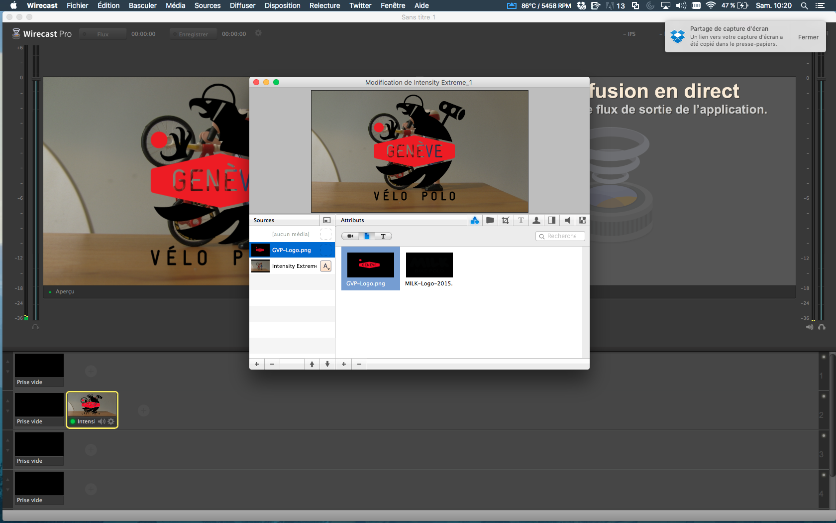 "Step 6" - 1680 × 1050 in Broadcast a bike polo tournament 6. Select an empty element then assign it a logo by clicking on it on the right side (dont forget to clic on the File button if you don’t find the logos) ← Previous image Next image → quentin Published 20 August 2016